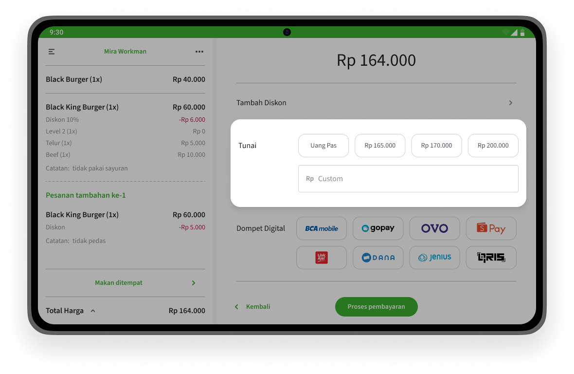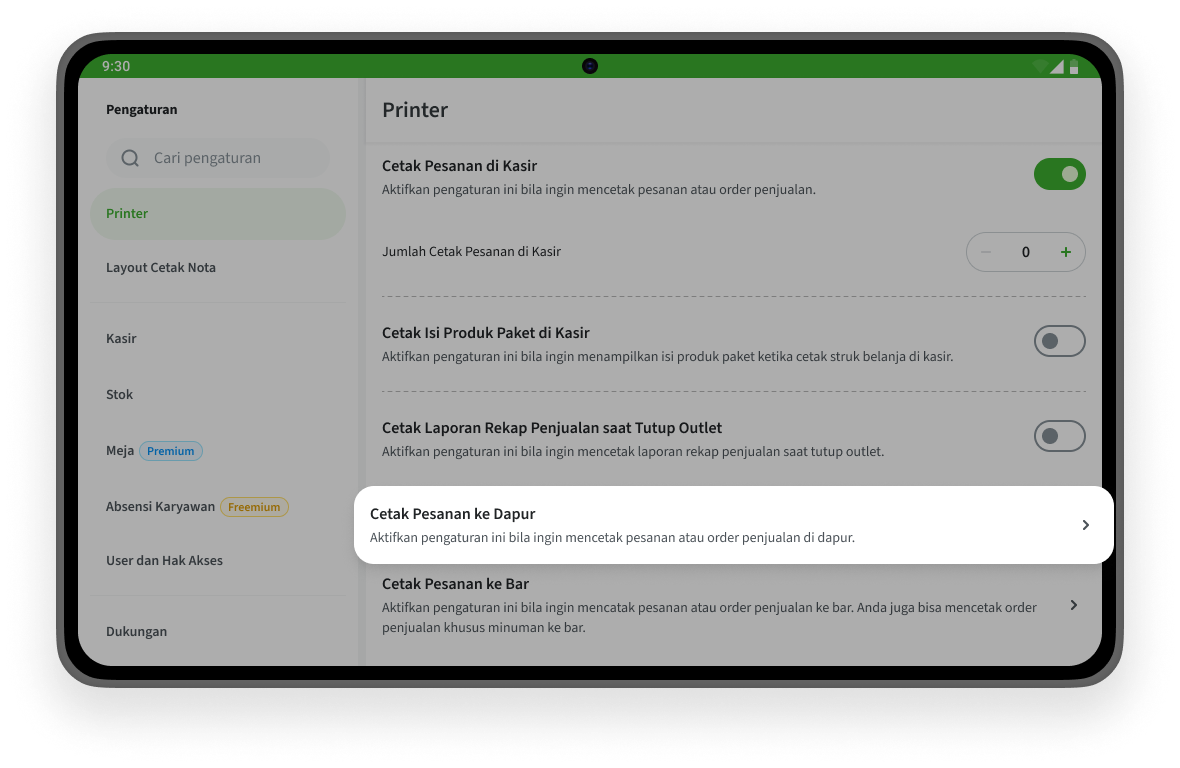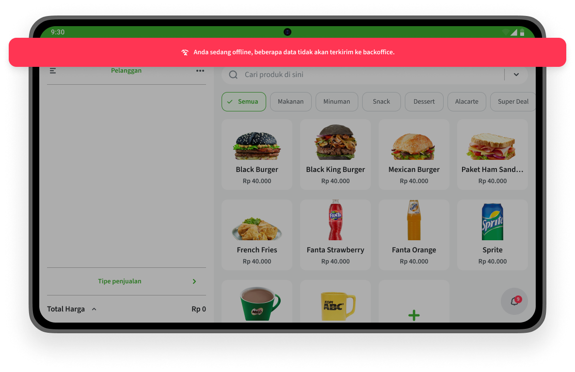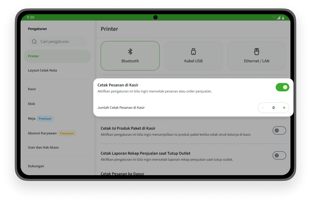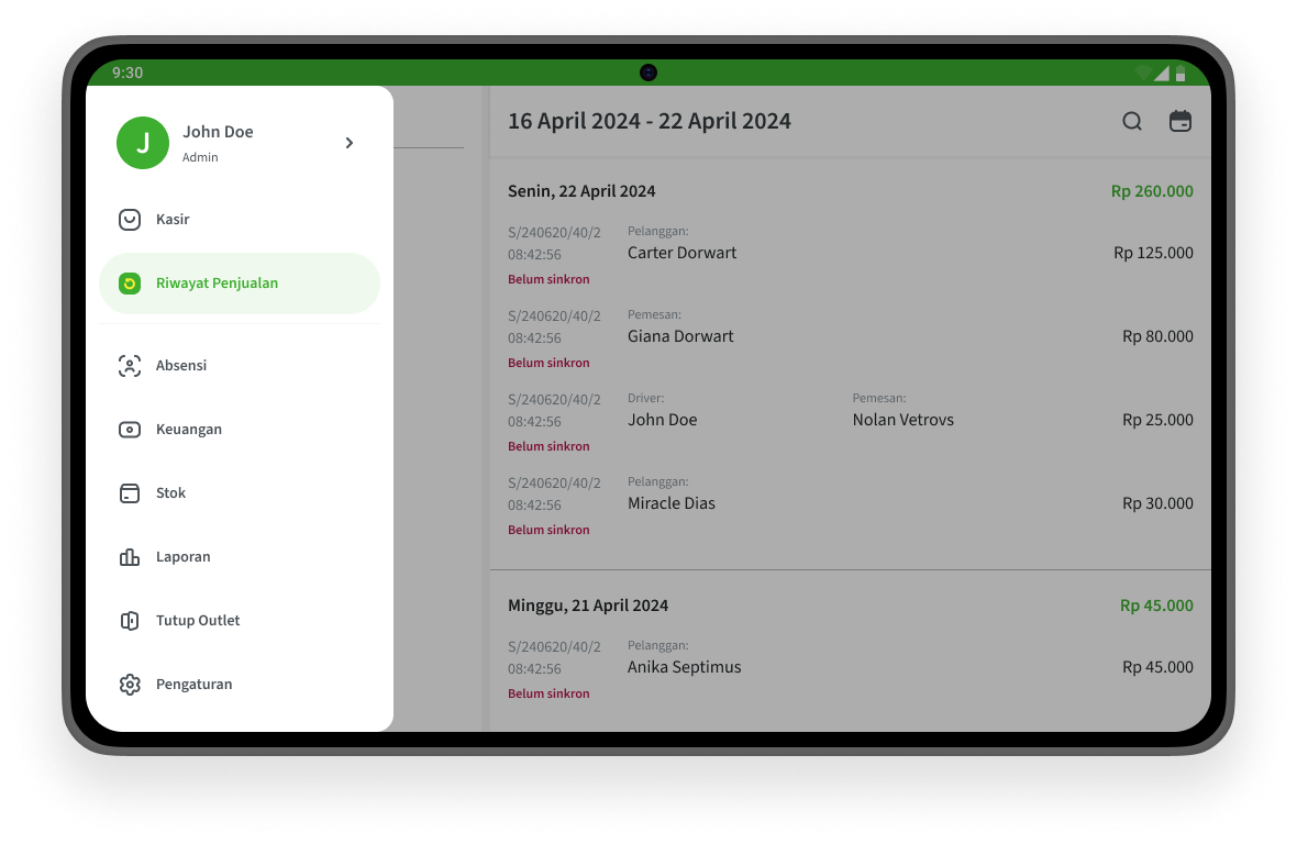 Satu akun untuk banyak tablet dalam 1 outlet. Urusan kasir, stok, sampai laporan pasti beres.