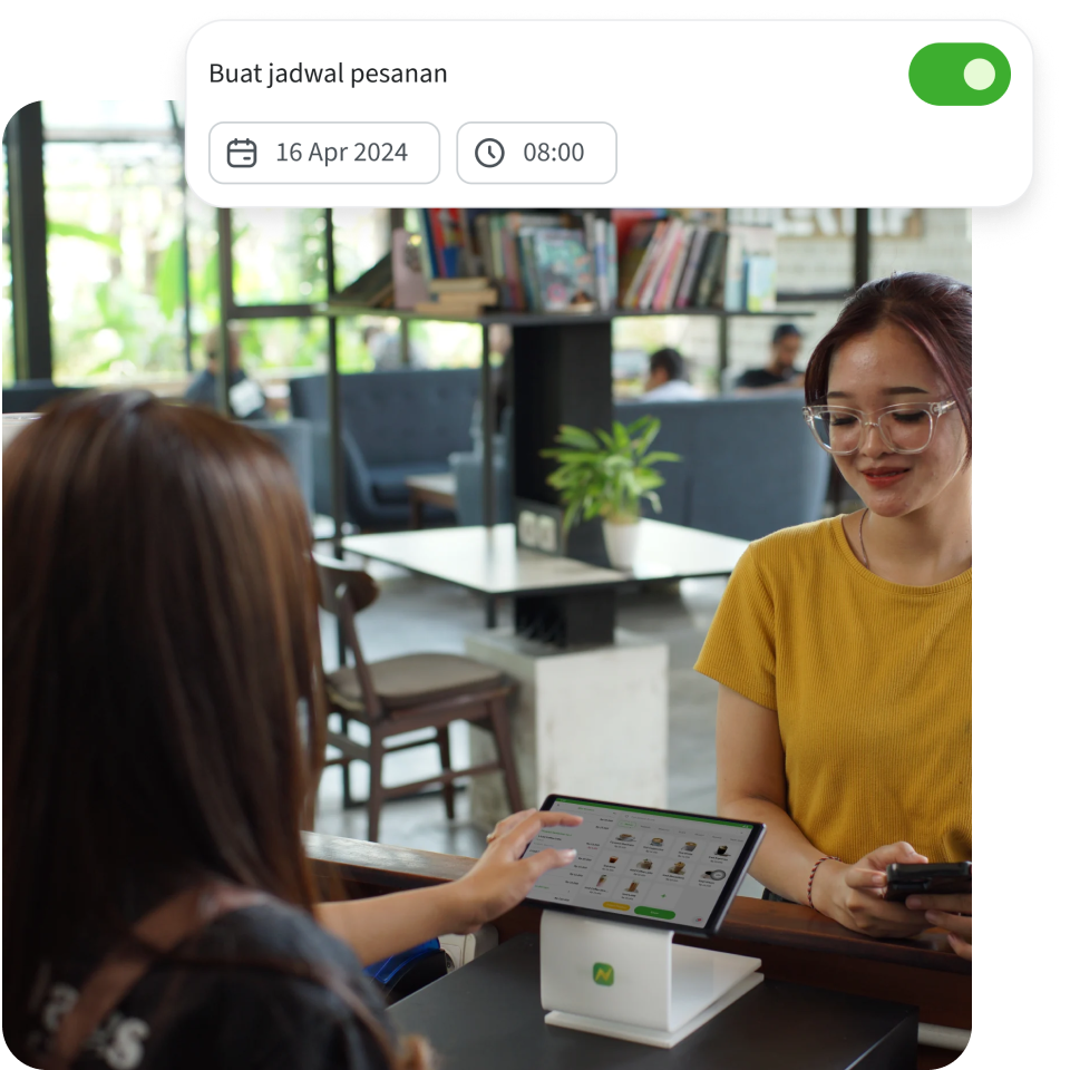 Pangkas antrian panjang dengan pasang banyak tablet untuk setiap konter kasir.