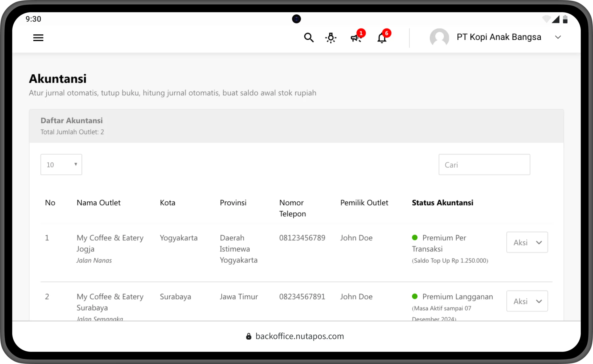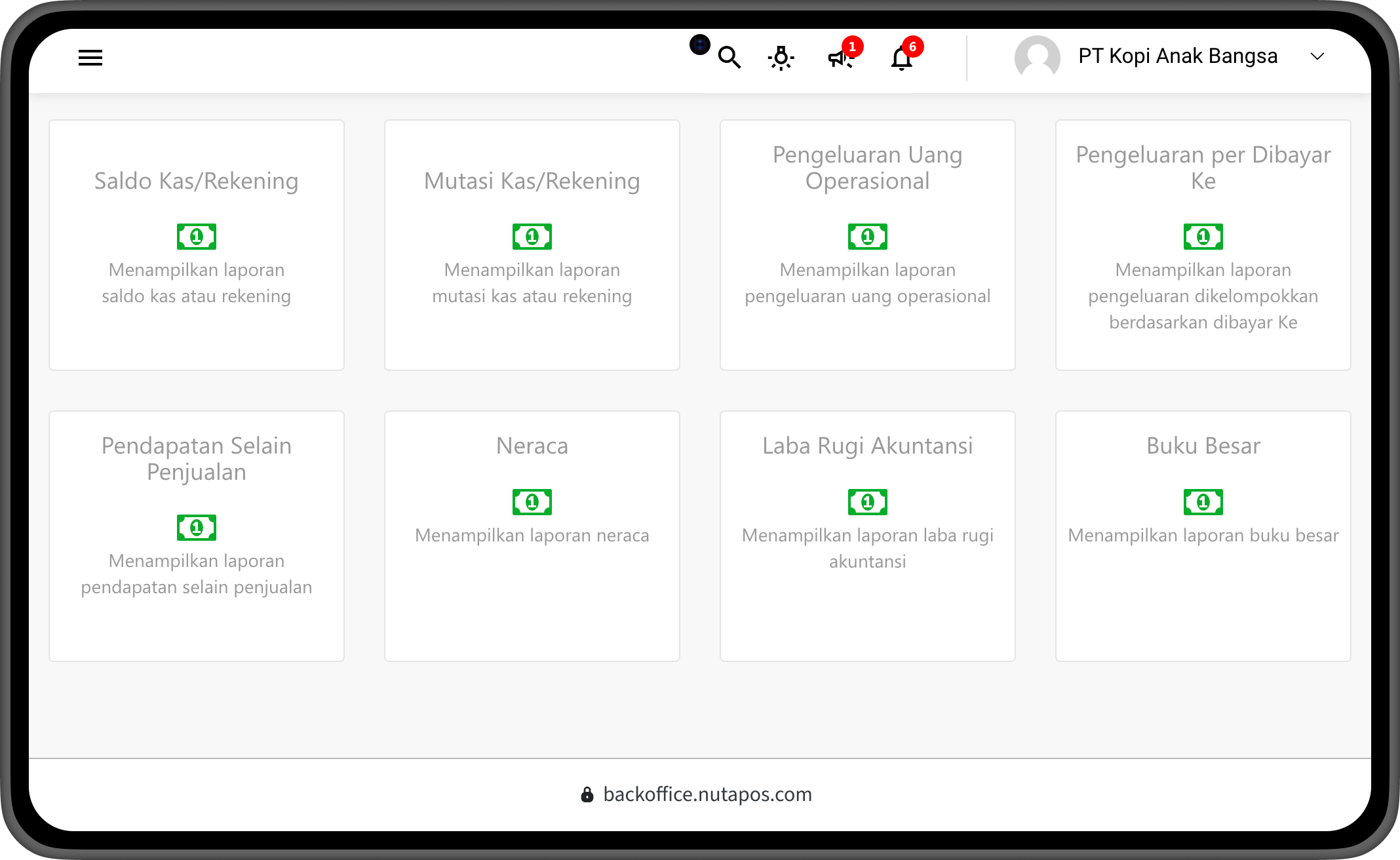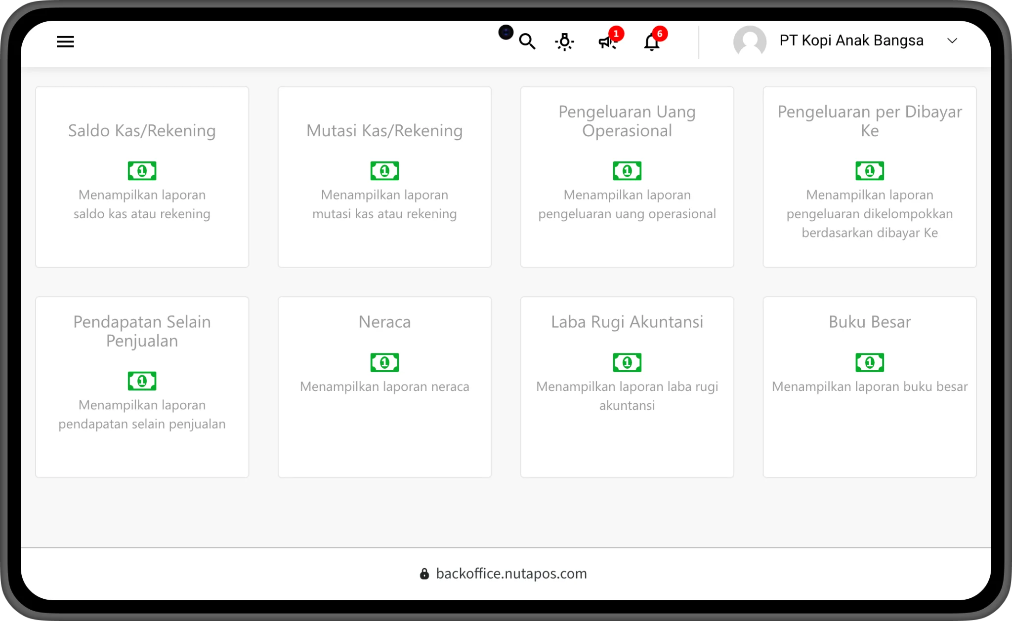 Bisa. Anda dapat lihat dan kelola laporan keuangan dari berbagai outlet yang dipunya melalui backoffice Nutapos.