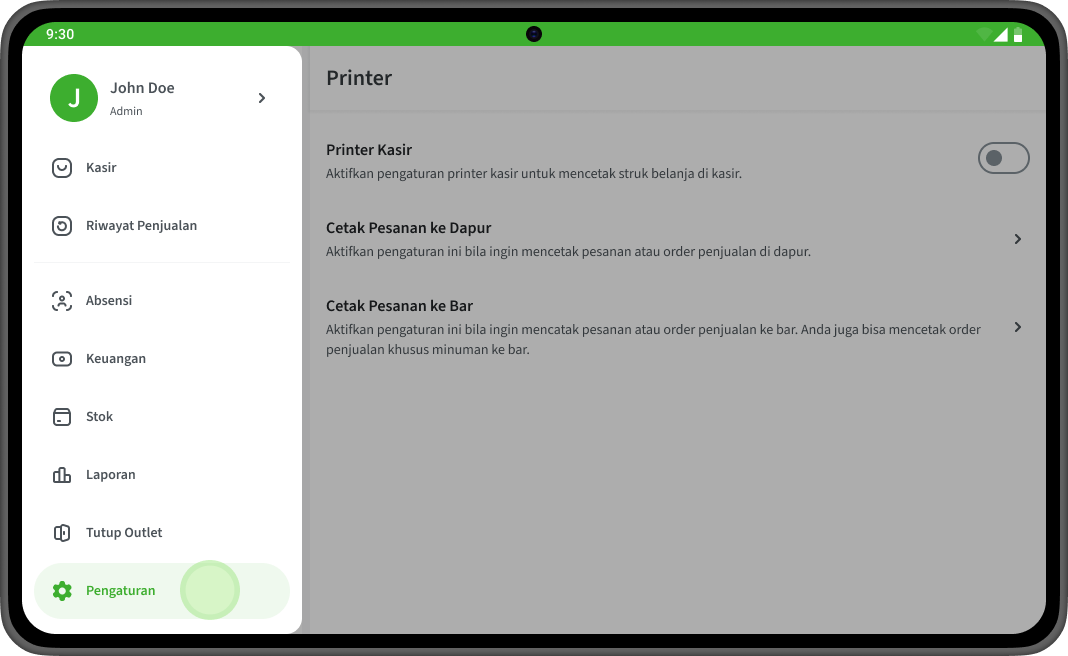 • Tekan tombol “Aktifkan Printer” untuk mengaktifkan modul printer dapur