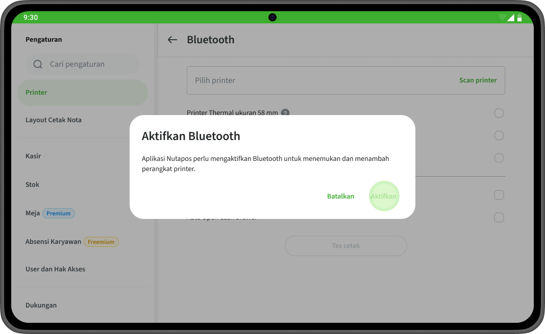 Berikut adalah langkah-langkah untuk menghubungkan printer bluetooth di kasir: