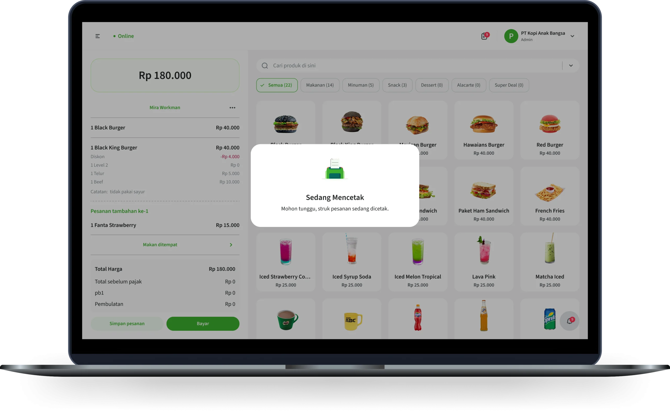 Sistem POS berbasis web adalah sistem kasir yang berjalan di browser laptop atau komputer Anda. Bisa online dan offline.